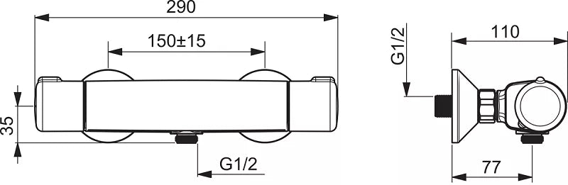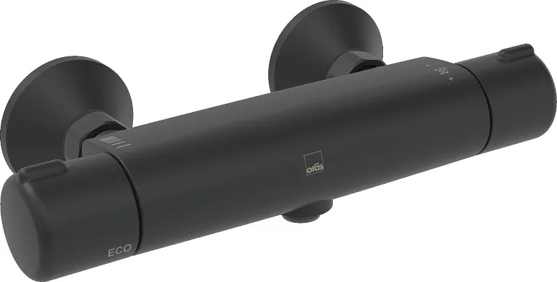 Termostatinis juodos spalvos maišytuvas padengtas tvirta, braižymuisi atsparia danga.