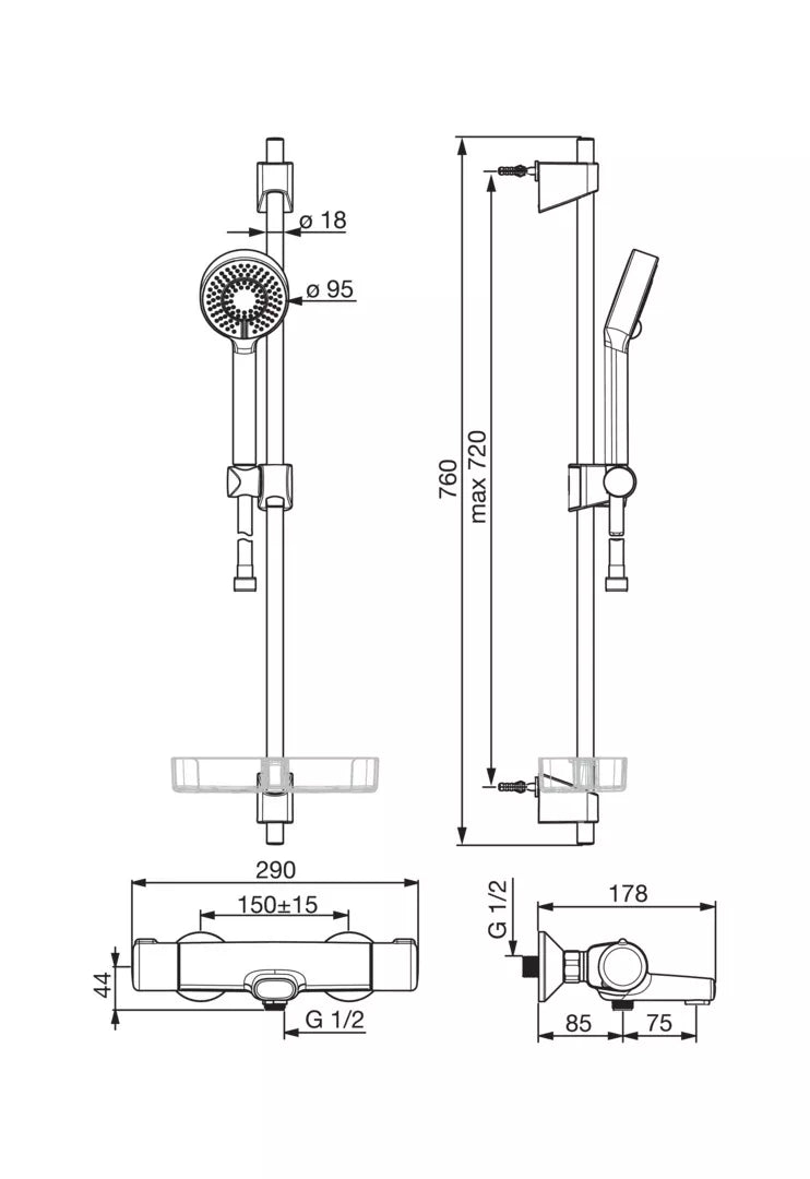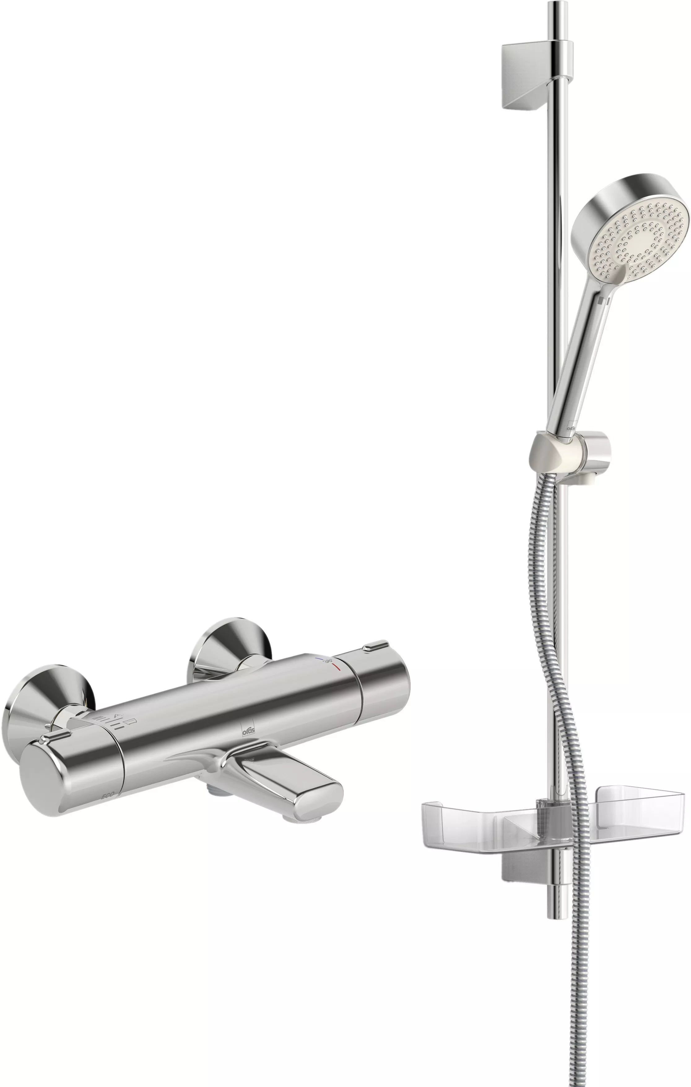 Vonios ir dušo termostatinis maišytuvas su Oras Apollo 544 dušo komplektu. Temperatūros reguliavimo rankenėlėje įtaisytas temperatūros ribotuvas, kuris apeinamas paspaudus mygtuką (nustatytas 38°C). Įdiegta taupymo funkcija EcoFlow. Maišytuvas komplektuojamas su ekscentrinėmis jungtimis, dangteliais, atbuliniais vožtuvais ir filtrais. Oras Apollo dušo komplektas komplektuojamas su trijų funkcijų antikalkiniu rankiniu dušu ir EcoFlow reguliatoriumi, 720 mm reguliuojamu dušo stovu, 1750 mm dušo žarna ir muilo lentynėle.