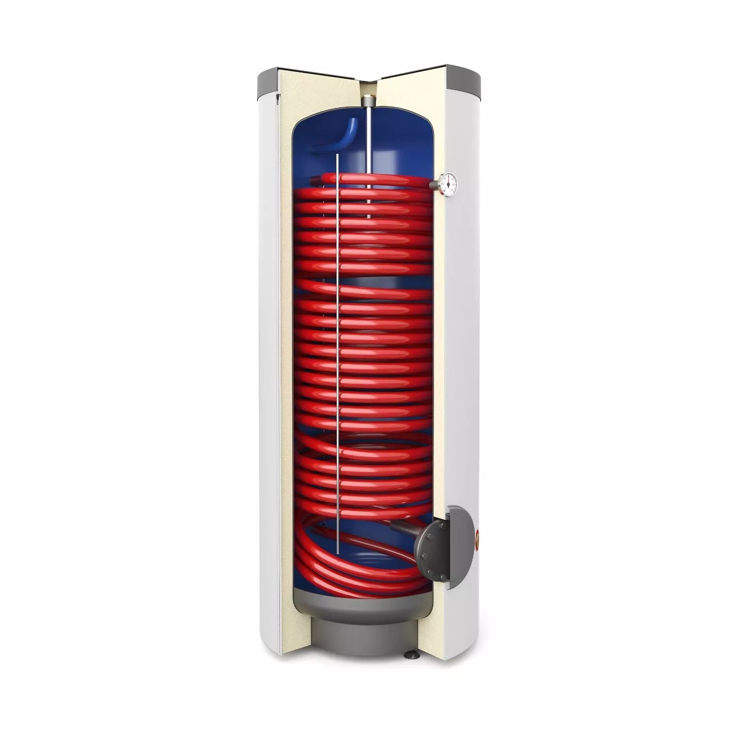 IzoliacijaStoras kieto poliuretano putplasčio izoliacijos sluoksnis suteikia didesnę apsaugą ir taip ilgai palaiko vandens temperatūrą bei mažas eksploatacijos išlaidas. Be to, šilumos nuostolius riboja išorinis PVC korpusas, sumontuotas ant izoliacijos.