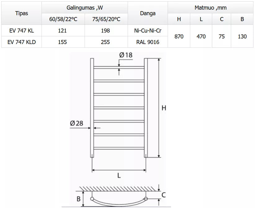 Galia nurodyta prie temperatūrų 75/65/20°C.