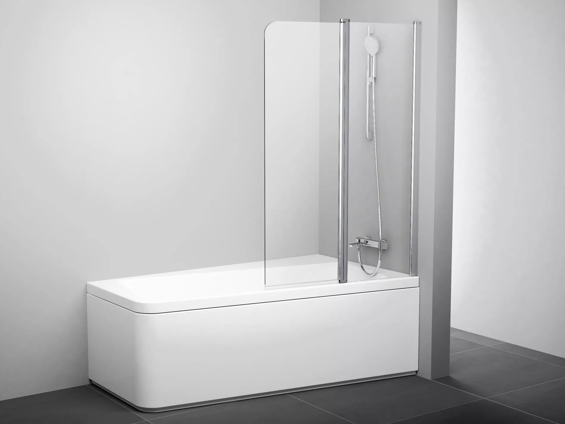Puikios kokybės stiklinė vonios sienelė, pagal dizainą suderinta su koncepcija 10°. Pasukimo mechanizmas leidžia sulankstyti sienelę tiek į vonios vidų, tiek į išorę, o tai palengvina stiklo priežiūrą ir sudaro platų įėjimą į vonią