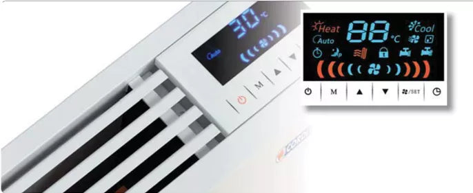 Itin tylūs ventiliatoriaiDidelio efektyvumo nuolatinės srovės  inverterio bešepetis variklisViena itin kompaktiška konstrukcija, skirta plonam dizainui ir minimaliam triukšmuiDidelio efektyvumo šilumokaitisCinkuota ir dažyta metalinė konstrukcija, komplektuojama su izoliacija ir aliuminio lydinio tinkleliaisJutiklinis ekranas. Šildymo režimas - aušinimo režimas - automatinis režimas - oro sausinimo režimas - ventiliatoriaus režimas - 1 ir 2 elektromagnetiniai vožtuvai - laikmatis - nakties režimas - ekrano užrakto funkcija - oro įleidimo temperatūra ir nustatyta temperatūraPolipropileno smulkusis filtrasKondensato drenažo dėklas su izoliacija nuo lašėjimo